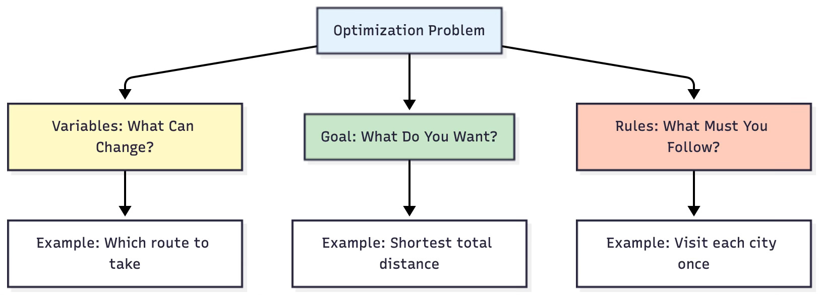 Real-world secret: Most companies don’t need the perfect solution - they need a good enough solution quickly. A delivery company is happy with a route that’s 5% longer than optimal if they can find it in 10 seconds instead of 10 hours.