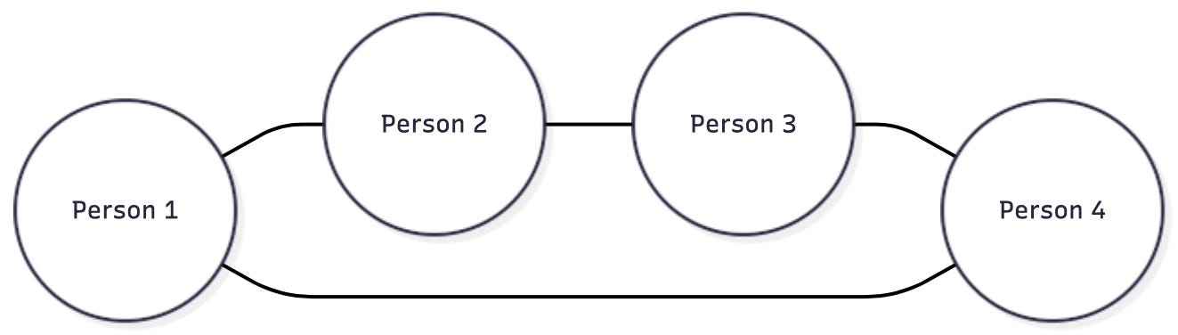 Scenario: You have 4 friends at a party. Some pairs of friends have met before, some haven’t. You want to divide them into two groups (Group A and Group B) to maximize “interesting” conversations - where people from different groups meet for the first time.